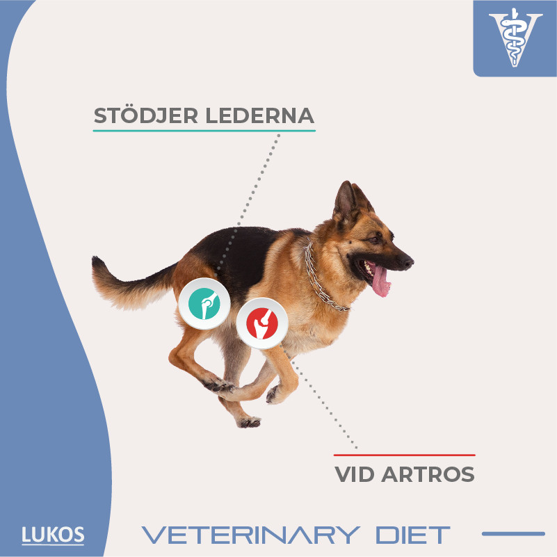 Lukos Veterinary Diet Joint & Mobility hundfoder är ett hundfoder som är speciellt framtaget för hundar med rörelseproblem, t.ex. artros. Fodret bidrar till att bibehålla smidiga leder och brosk.