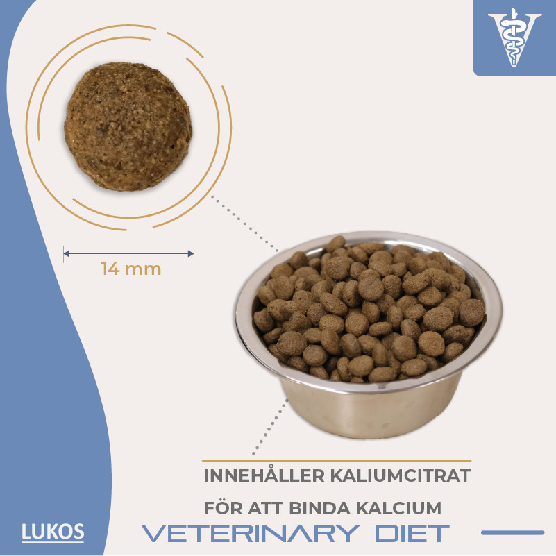 Lukos Veterinary Diet Renal hundfoder är ett veterinärfoder för vuxna hundar med njursvikt och/eller leverproblem. Detta dietfoder är speciellt sammansatt för att stödja din hunds njurar och lever vid kronisk njursvikt och leverproblem. Torrfodret bidrar också till att minska bildandet av oxalatstenar, cystinstenar och kopparansamling i levern.