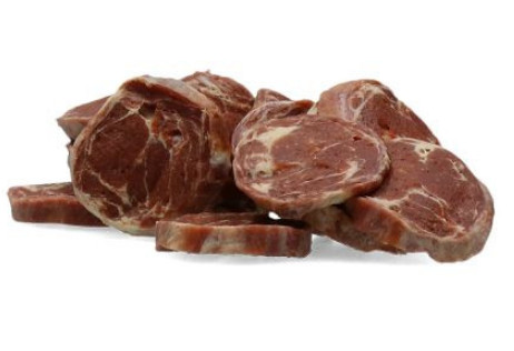 Sammansättning: nötkött 63,4%, torsk 20%, ärtprotein 5%, tapiokastärkelse 6%, glycerin 5%, salt 0,5%, kaliumsorbat 0,1%.