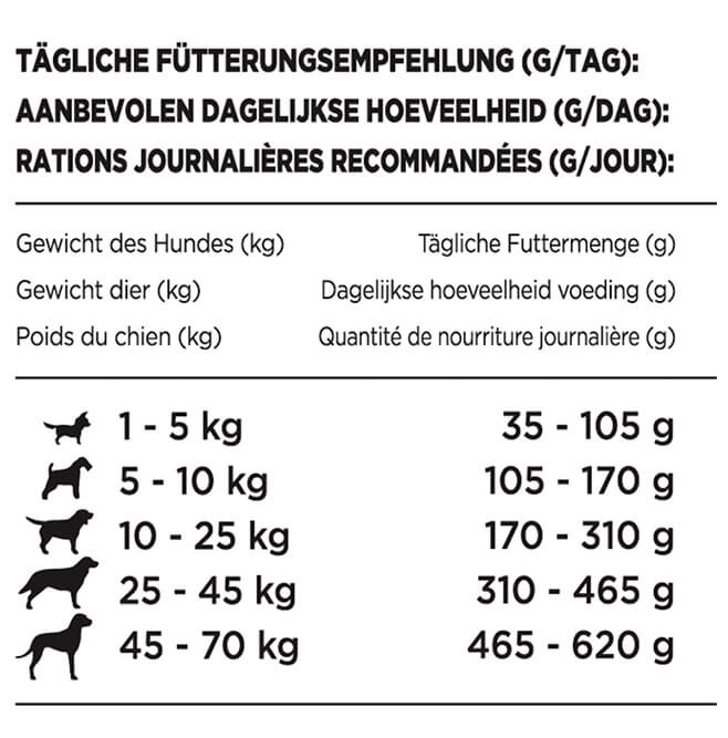 D-vitamin och rätt mineraler stödjer din hunds ben och tänder. Essentiella fettsyror, som omega 3 och 6, främjar en frisk hud och en glänsande päls. Beneful Gelukkig Volwassen (Lycklig Vuxen) 7+ hundfoder innehåller fibrer från spannmål som främjar en hälsosam matsmältning. Foderbitarna är gjorda av kött och fodret innehåller både knapriga och mjuka bitar. Även formen på bitarna varierar. Detta gör att din hund kommer att njuta ännu mer av sin måltid.