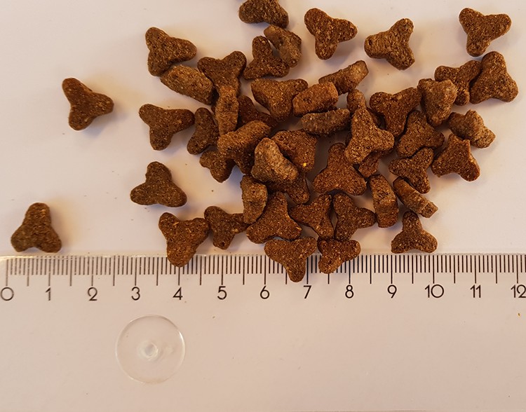 Sammanställning: torkat fjäderfä, vete, majs, ris, animaliskt proteinextrakt, cellulosa, animaliskt fett (fjäderfä, nötkött), torkad betmassa, jäst, majsgluten, fiskolja (lax), hydrolyserad kycklinglever, inulin (källa till FOS), mineraler (kaliumklorid), linfröolja (raffinerad), Yucca schidigera-extrakt.