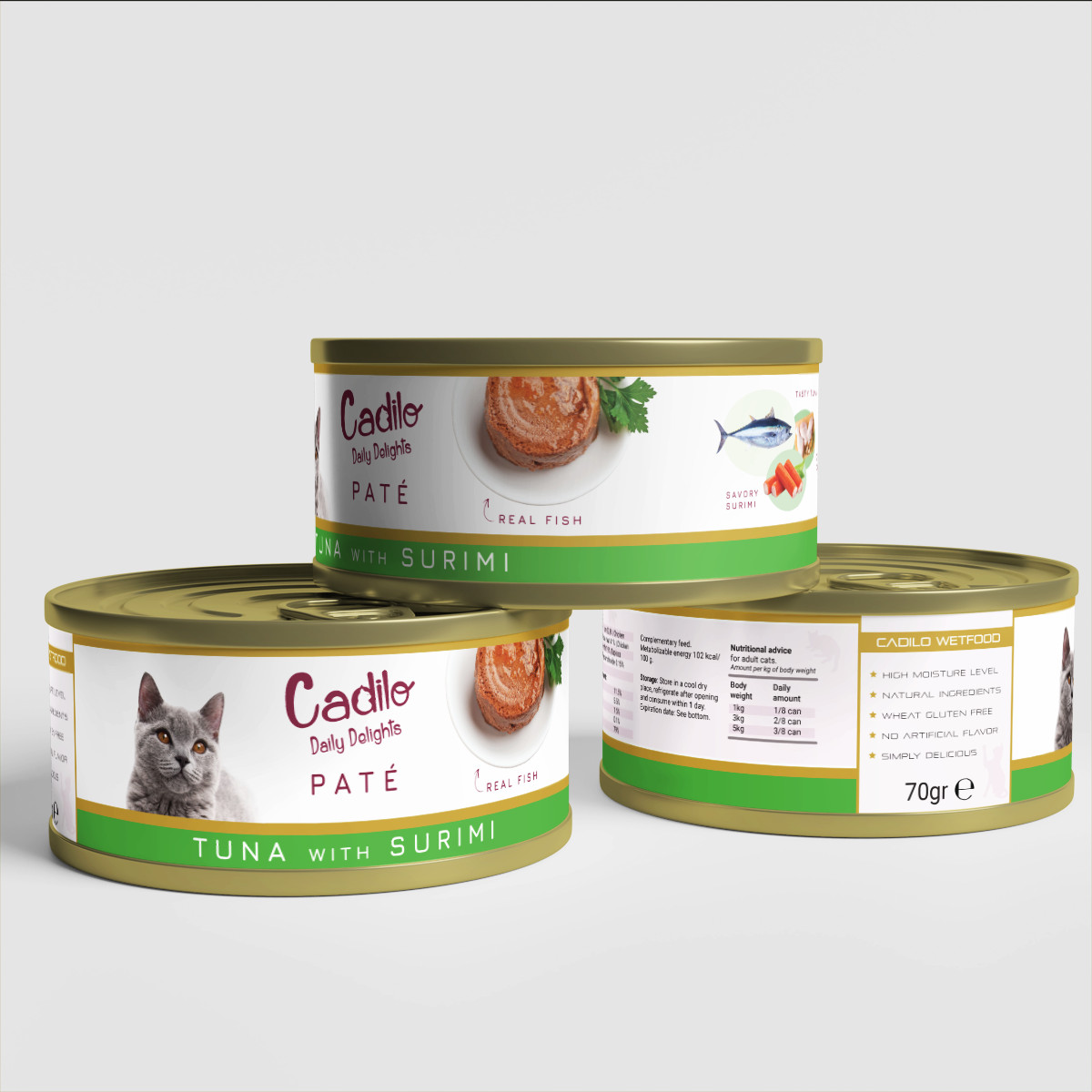 Cadilo Daily Delights - tonfisk med surimi paté - våtfoder katt är perfekt som ett komplement till torrfoder eller som ett läckert mellanmål. Den välsmakande patén får även kräsna katter att äta.