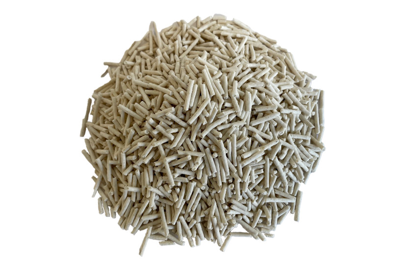 Kitty Friend White Super Clumping kattsand består av klumpbildande, miljövänliga kattsandskorn tillverkade av återvunnet material.