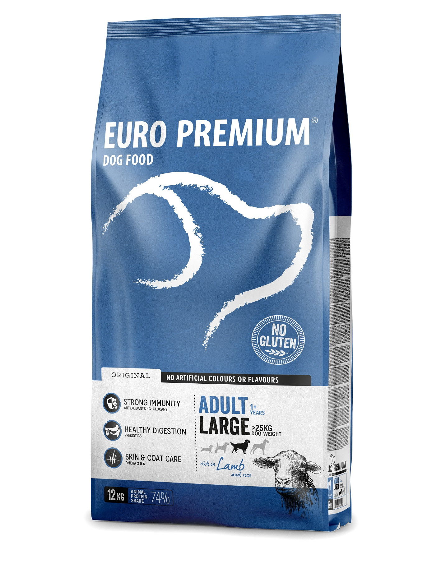 Euro Premium Adult Large m/Lamb & Rice hundfoder är ett balanserat och lättsmält torrfoder som passar vuxna, stora hundar som väger mellan 25 och 45 kg.