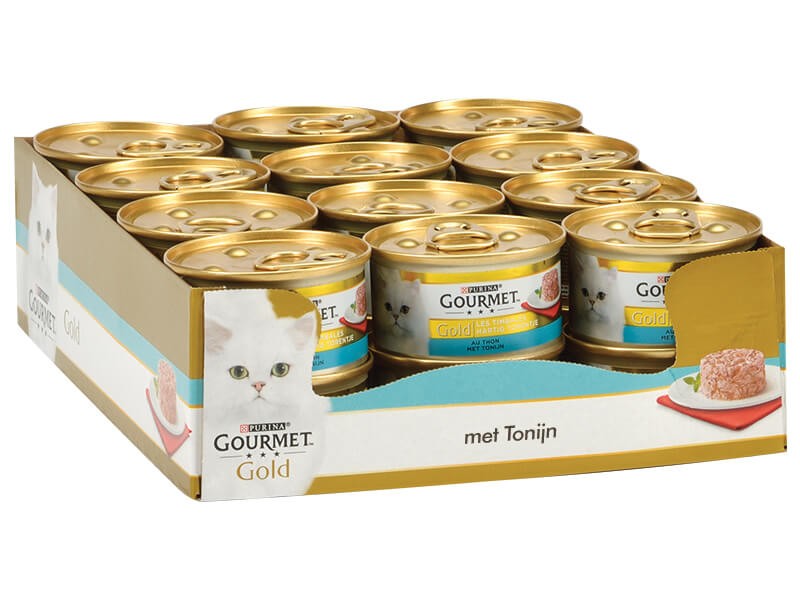 Med Gourmet Gold Savoury Tower med tonfisk våtfoder katt (burk 85 gram) kommer din katt aldrig att tröttna på sina måltider. Denna nya serie med högkvalitativa ingredienser presenteras i form av ett torn, vilket garanterar en härlig matupplevelse som din katt kommer att njuta av. Gourmet Gold våtfoder innehåller fina tonfiskbitar och receptet är fritt från artificiella färgämnen, konserveringsmedel och smakämnen.