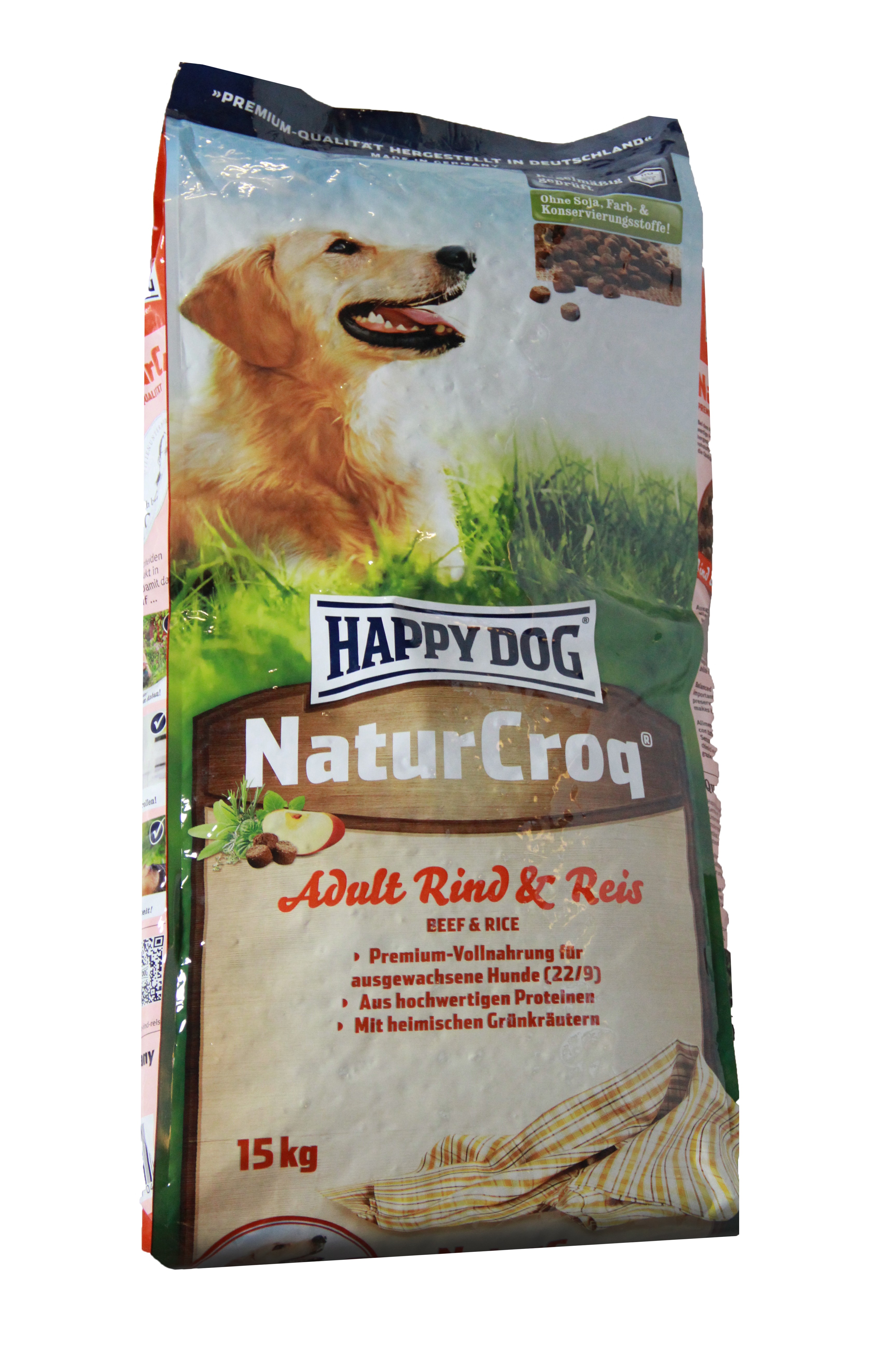 Happy Dog NaturCroq med nötkött och ris hundfoder är ett specialfoder avsett för vuxna hundar med normalt energibehov. Vuxna hundar är i sina bästa år och rätt näringsämnen är av stor betydelse. Fodret innehåller endast högkvalitativa ingredienser som fisk, fågel, spannmål, grönsaker och örter. Fodret är lättsmält vilket underlättar näringsupptaget. Fodret innehåller kött i kombination med en mängd olika grönsaker och fullkornsflingor för att ge en så komplett måltid som möjligt.