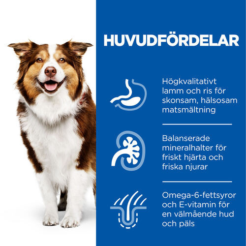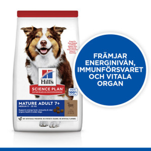 Hill's Mature Adult Medium med lamm & ris hundfoder är ett torrfoder för vuxna hundar av medelstora raser som är över 7 år.