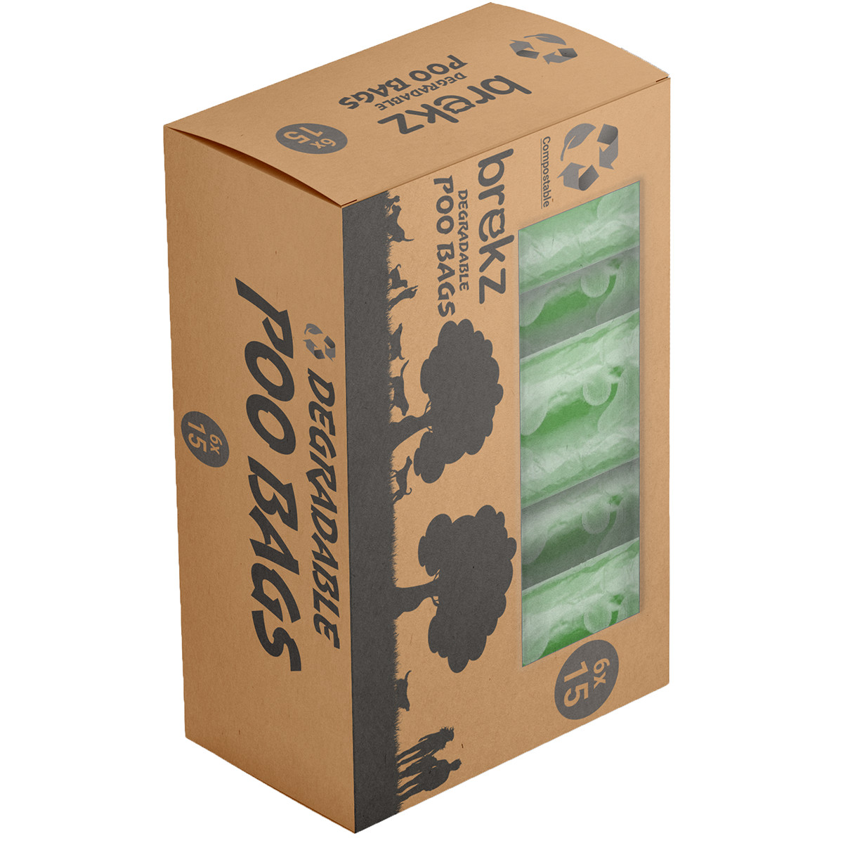 Brekz biologiskt nedbrytbara bajspåsar (6x15 st) är robusta bajspåsar som du enkelt kan ta med dig på hundpromenaden. De här påsarna är inte bara mycket praktiska att använda, de är också ett miljömedvetet val. Påsarna är tillverkade av hållbar PLA och är biologiskt nedbrytbara.
