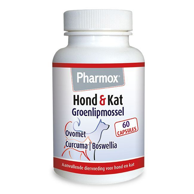Pharmox HK Grönläppad mussla för hund och katt är ett innovativt kosttillskott i kapslar. En unik kombination av grönläppad mussla, ovomet (äggmembran) och gurkmeja för att främja flexibla leder och robusta ben hos din hund eller katt.