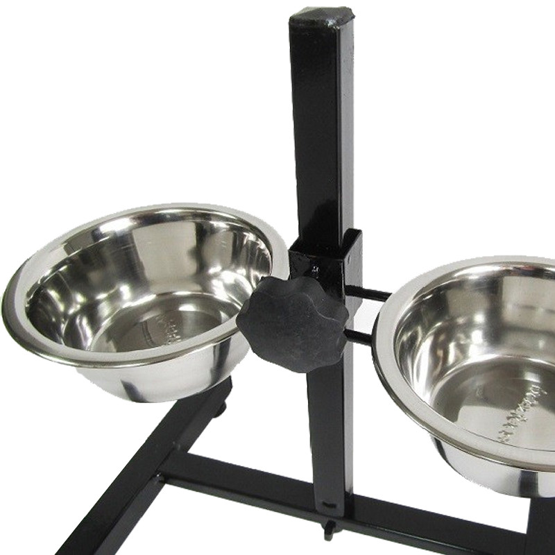 Brekz foderställ med skålar för hund är ett robust stativ med två matskålar i rostfritt stål vars höjd du kan anpassa efter din hunds storlek.