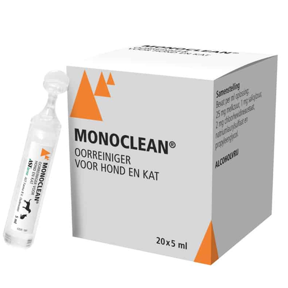 Monoclean öronrengöring för hund och katt – 20 x 5 ml är ett alkoholfritt läkemedel som hjälper till att ta bort överflödigt öronvax och inflammatorisk materia i den yttre hörselgången hos ditt djur. Om din hund eller katt har problem med öronvax eller annan inflammatorisk materia kan din veterinär föreskriva ett speciellt medel för att hjälpa ditt husdjur.