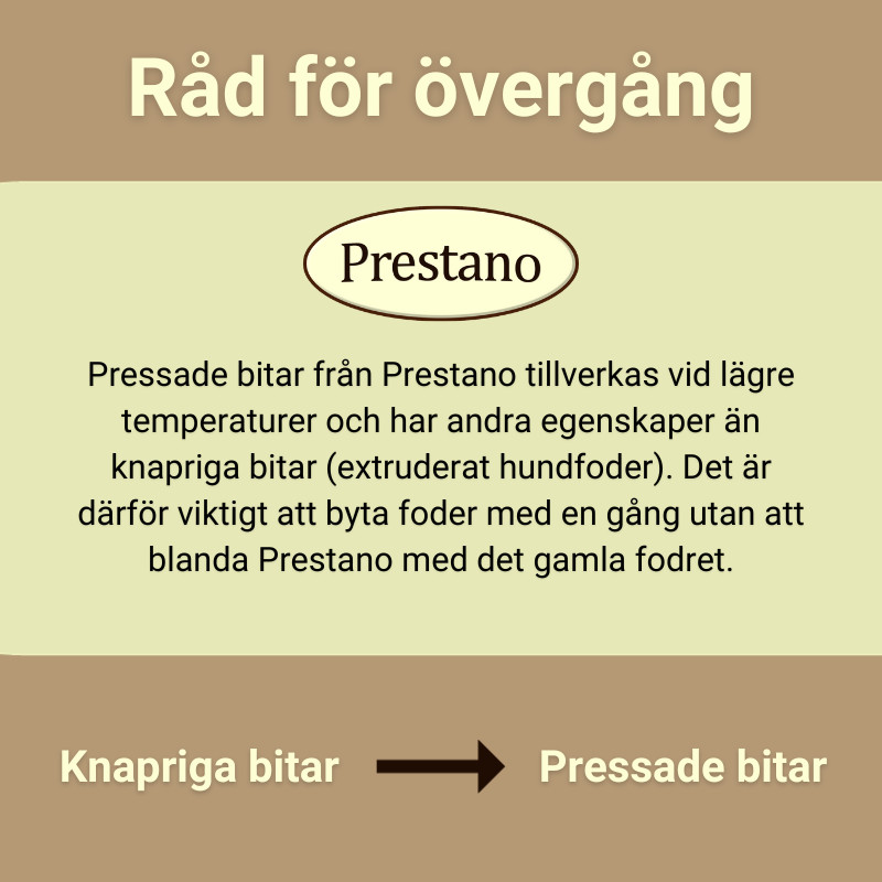 Letar du efter ett alternativ till detta foder, t.ex. ett torrfoder för foderkänsliga hundar och hundar med känslig hud som inte är kallpressat? Ta då en titt på Hill's Prescription Diet Z/D Food Sensitivities hundfoder. Vill du se fler varianter från Prestano? Kolla då in sidan Prestano hundfoder.