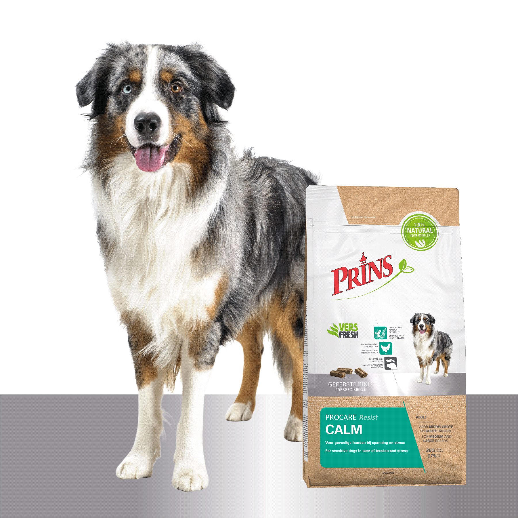 Prins ProCare Resist Calm hundfoder är lämpligt för hundar från 12 månaders ålder eller äldre. Fodret är speciellt utvecklat för vuxna hundar som lider av nedsatt immunförsvar. Det finns många olika omständigheter som kan minska din hunds immunförsvar. Ångest eller stress kan vara en viktig faktor, men även sjukdom eller operation kan minska det. Med rätt kost kan du hjälpa din hund att stärka sitt immunförsvar och leva ett friskare och lyckligare liv.