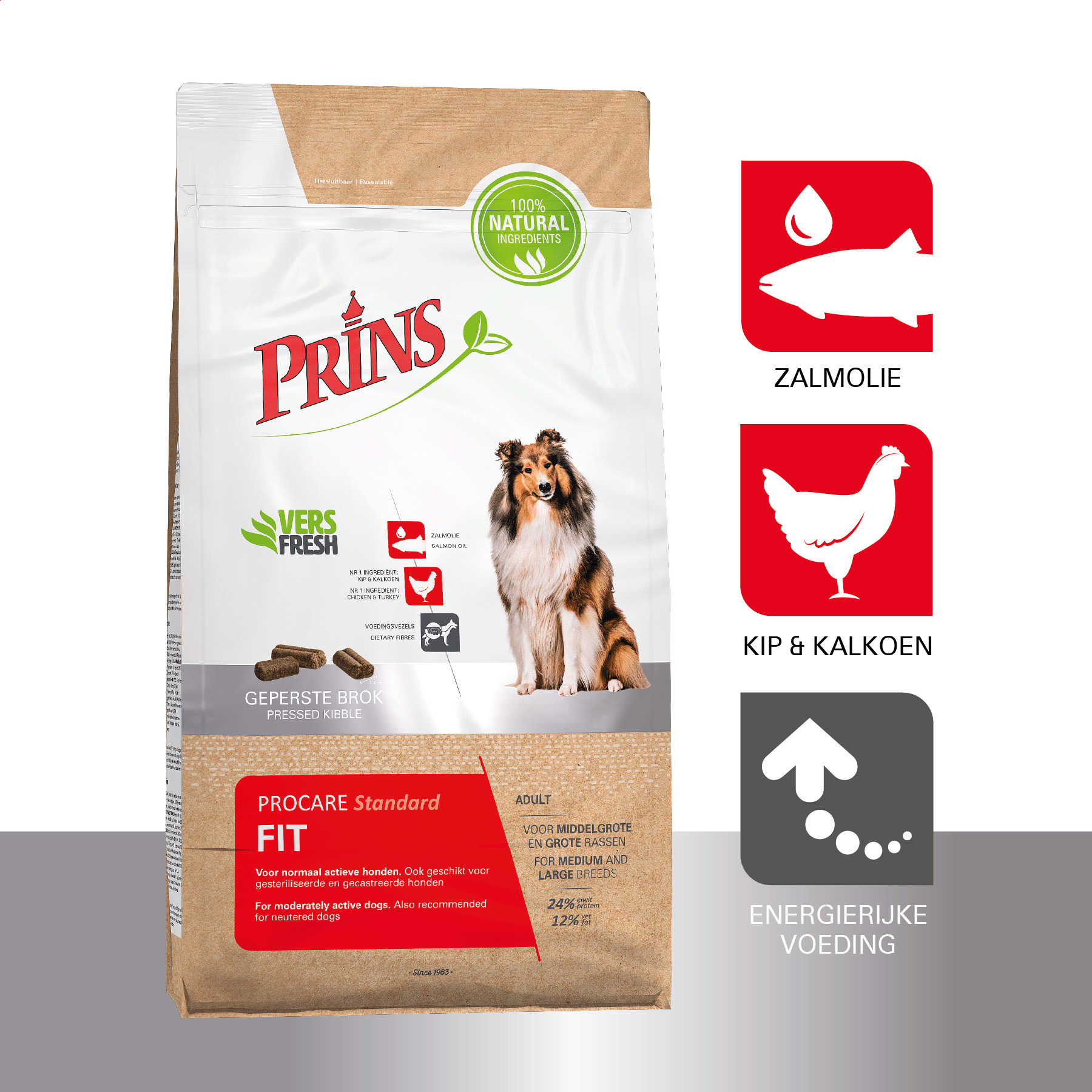 Prins ProCare Standard Fit hundfoder är ett pressat torrfoder för vuxna hundar med normalt energibehov.