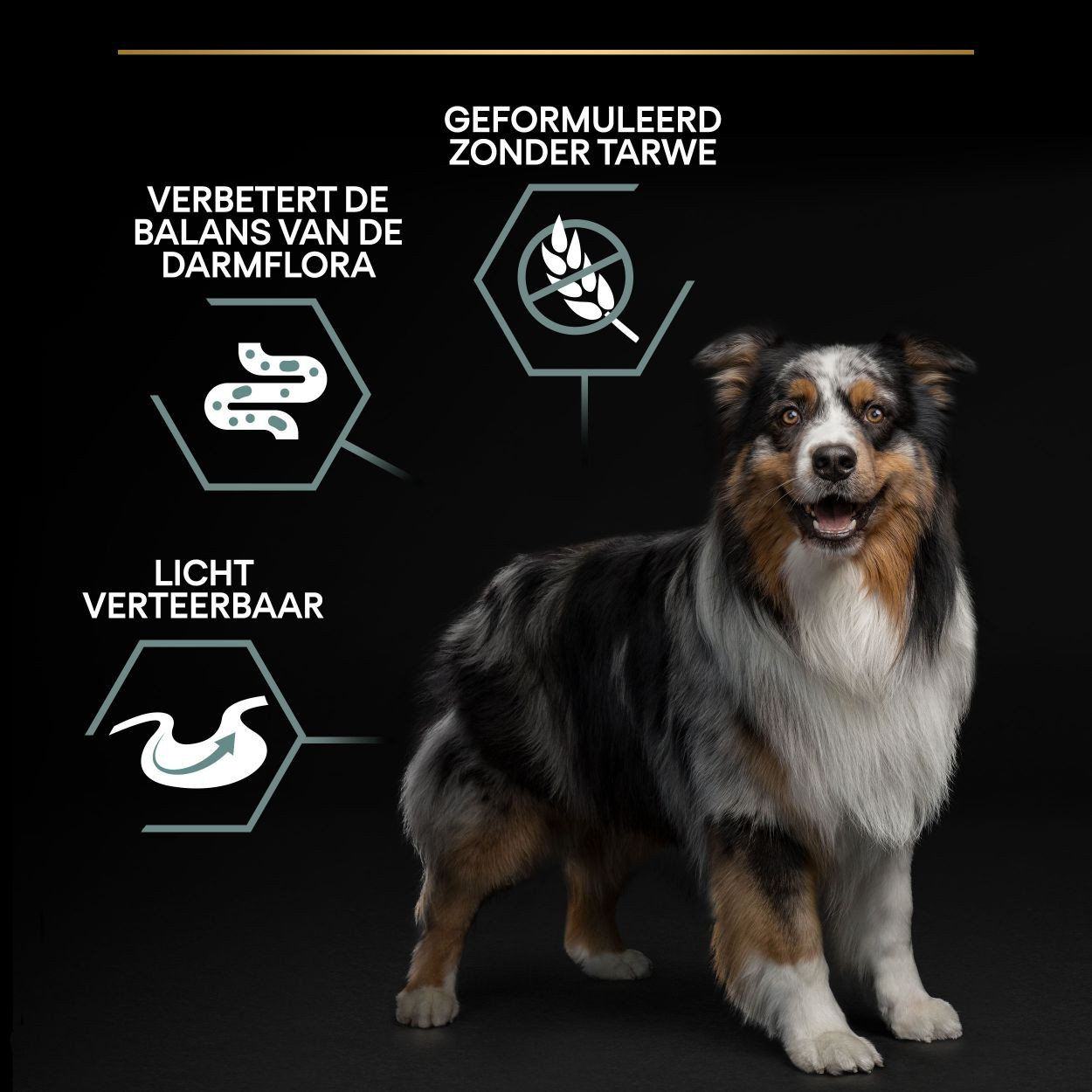 Pro Plan Medium & Large Adult Sensitive Digestion spannmålsfritt hundfoder är ett komplett foder för vuxna hundar av medelstora och stora raser som har en känslig matsmältning.