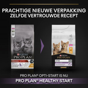 Purina Pro Plan Kitten Healthy Start kattfoder med kyckling är ett helfoder för kattungar (1 till 12 månader) av alla raser och kan även ges till dräktiga och digivande honor. Under det första året utvecklar din lilla katt det naturliga immunförsvaret, som ska stödja dess hälsa under hela livet. Detta foder stöder immunförsvaret och har en balanserad blandning av näringsämnen som främjar matsmältningen och skyddar urinvägarna.