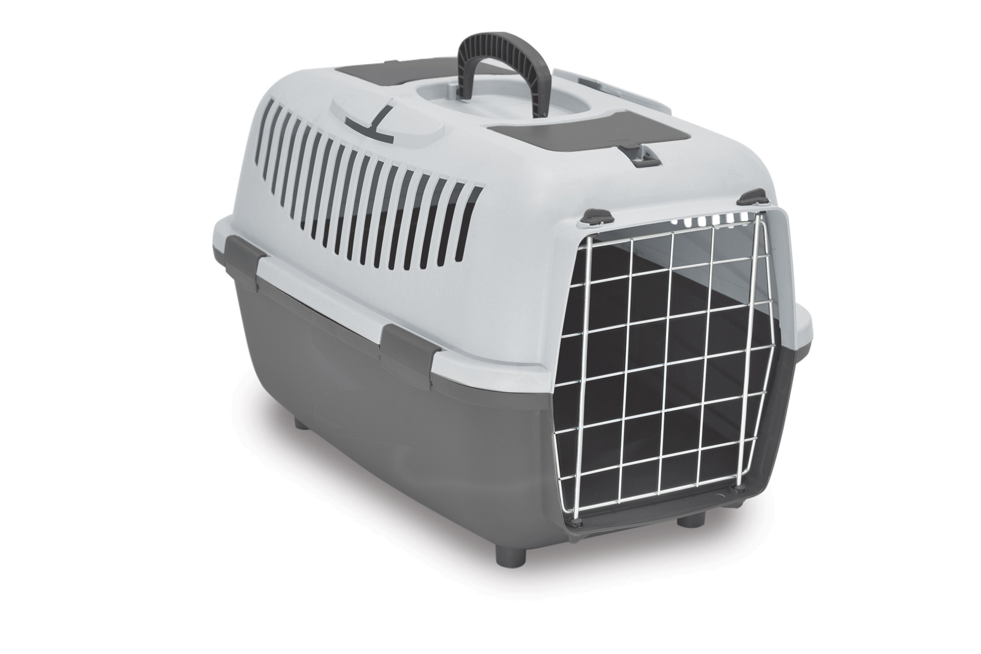 Transportbur med metalldörr grå är en praktisk resebur som finns i 2 storlekar.