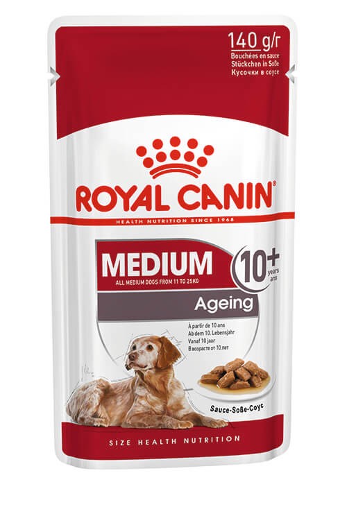 Royal Canin Medium Ageing 10+ våtfoder är ett utsökt våtfoder för hundar över 10 år. Kännetecken för Royal Canin Medium Ageing 10+ våtfoder:
