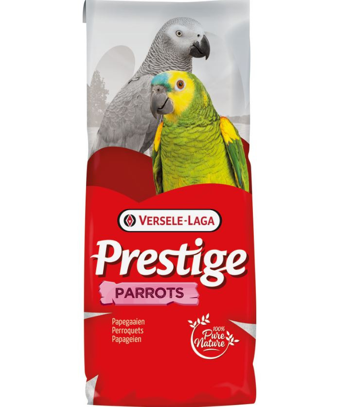 Versele-Laga Prestige Papegojor papegojfoder är en rik kvalitetsblandning av frön för papegojor. Fodret innehåller en fröblandning med allt som din papegoja behöver för att hålla sig i toppform. Prestige Papegoja innehåller kärnor och är dessutom kompletterat med specialkorn som innehåller vitaminer, aminosyror och mineraler. Dessa korn bidrar till bättre kondition och en sund tarmfunktion. Versele-Lage Prestige Papegoja har ett lågt fettinnehåll