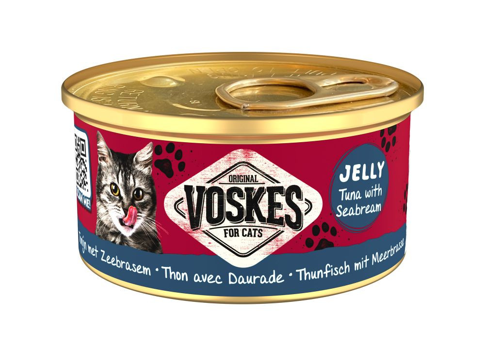 Voskes Jelly tonfisk med rödpagell våtfoder katt (24x85 g) är ett utsökt kompletterande våtfoder med essentiella fettsyror för vuxna katter.