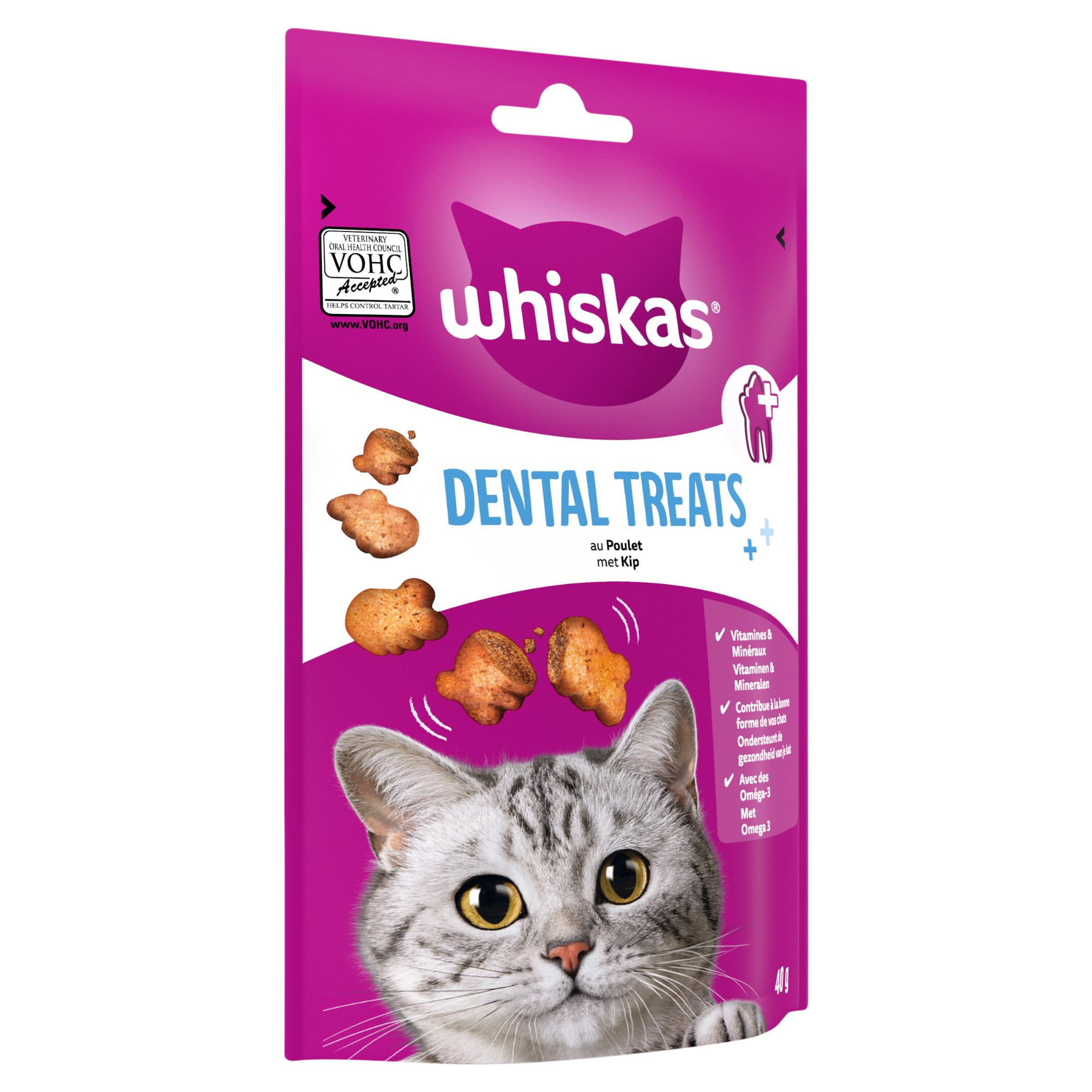 Whiskas Dental Treats kattgodis är läckra kattgodisar som stödjer tandhälsan.